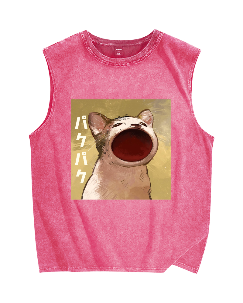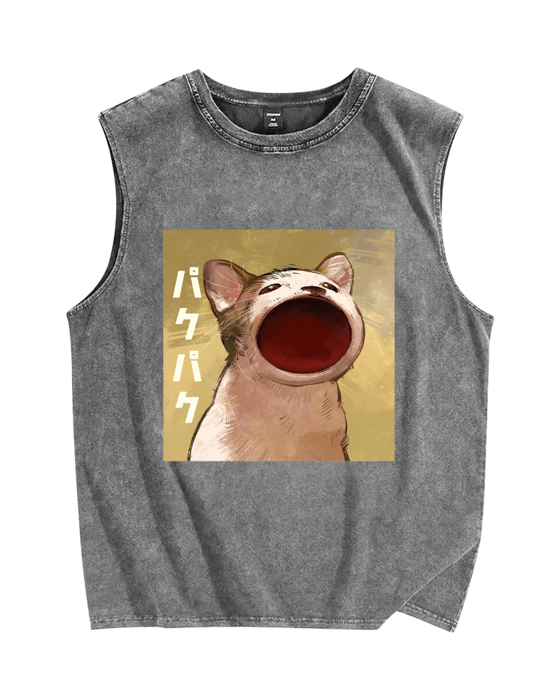 Pop Cat Vintage Distressed Washed Tank Top