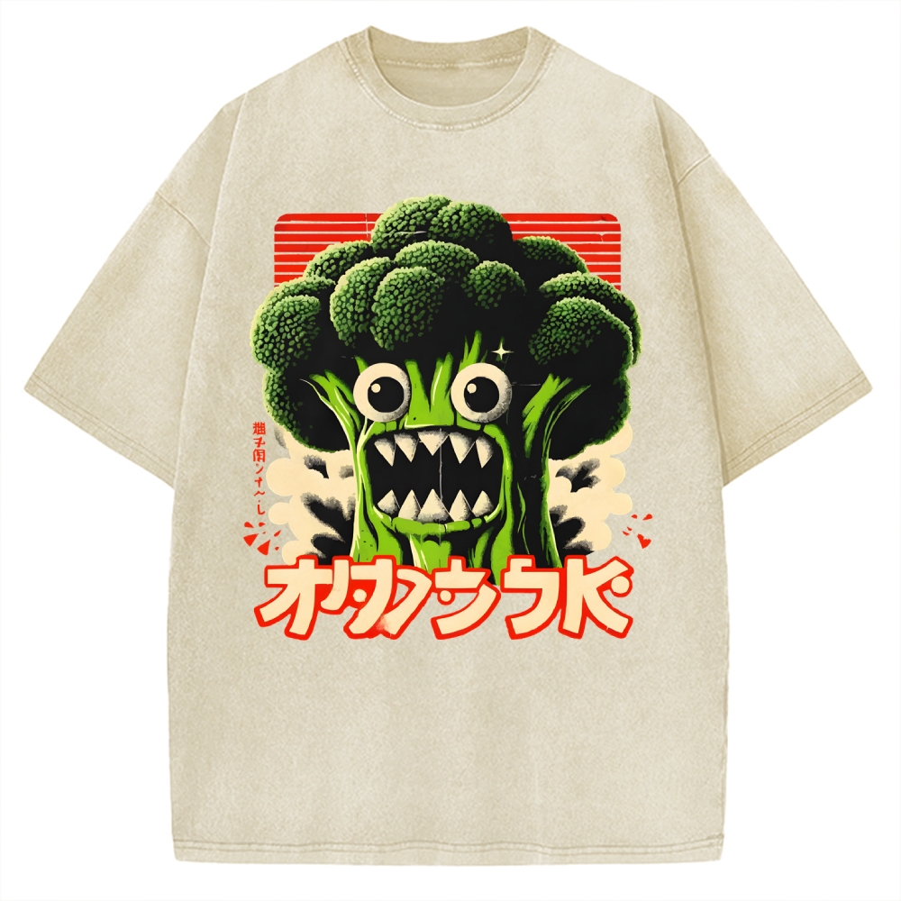 Retro Broccoli Fun Japanese Monster Vintage Washed T-shirt