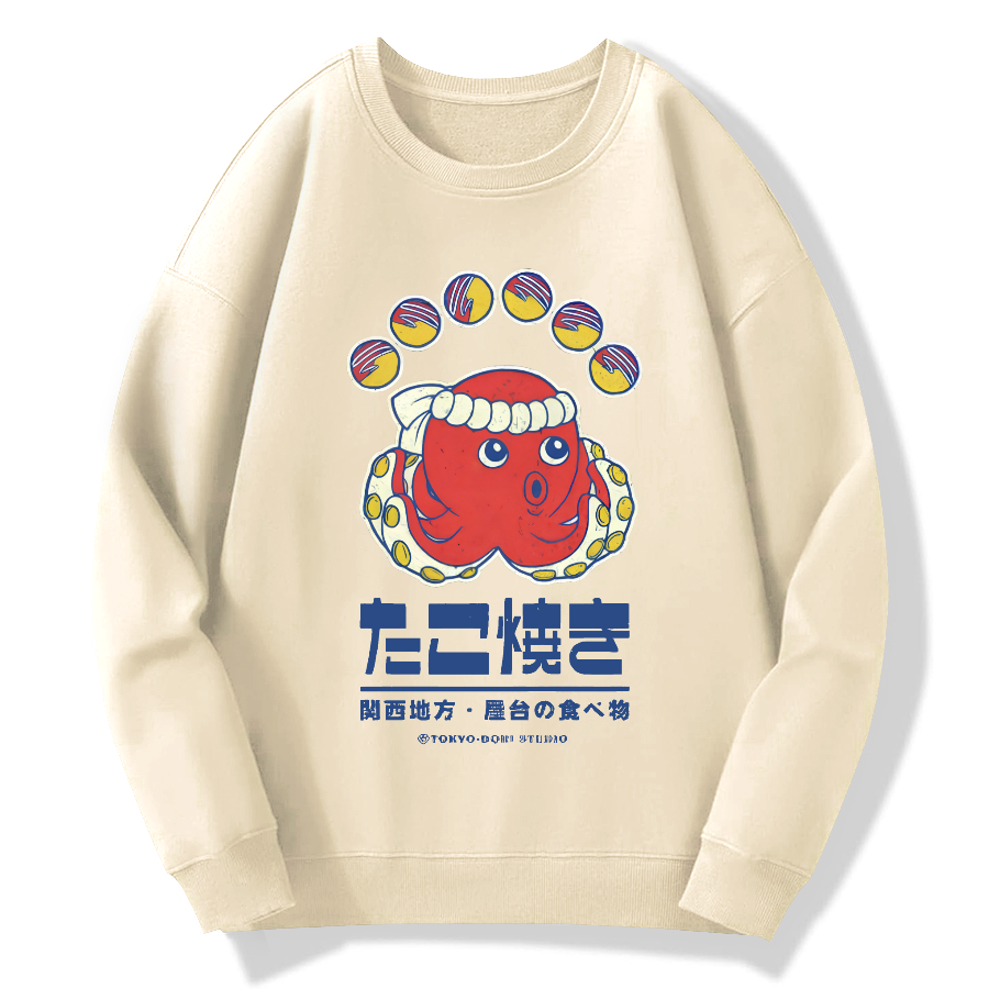 Retro Octopus Burnt Cotton Pullover Sweatshirt