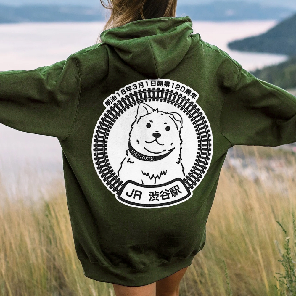 Shibuya Hachikou Printed Back Cotton Hoodie