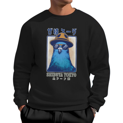 Shibuya Pigeon Retro Cotton Pullover Sweatshirt