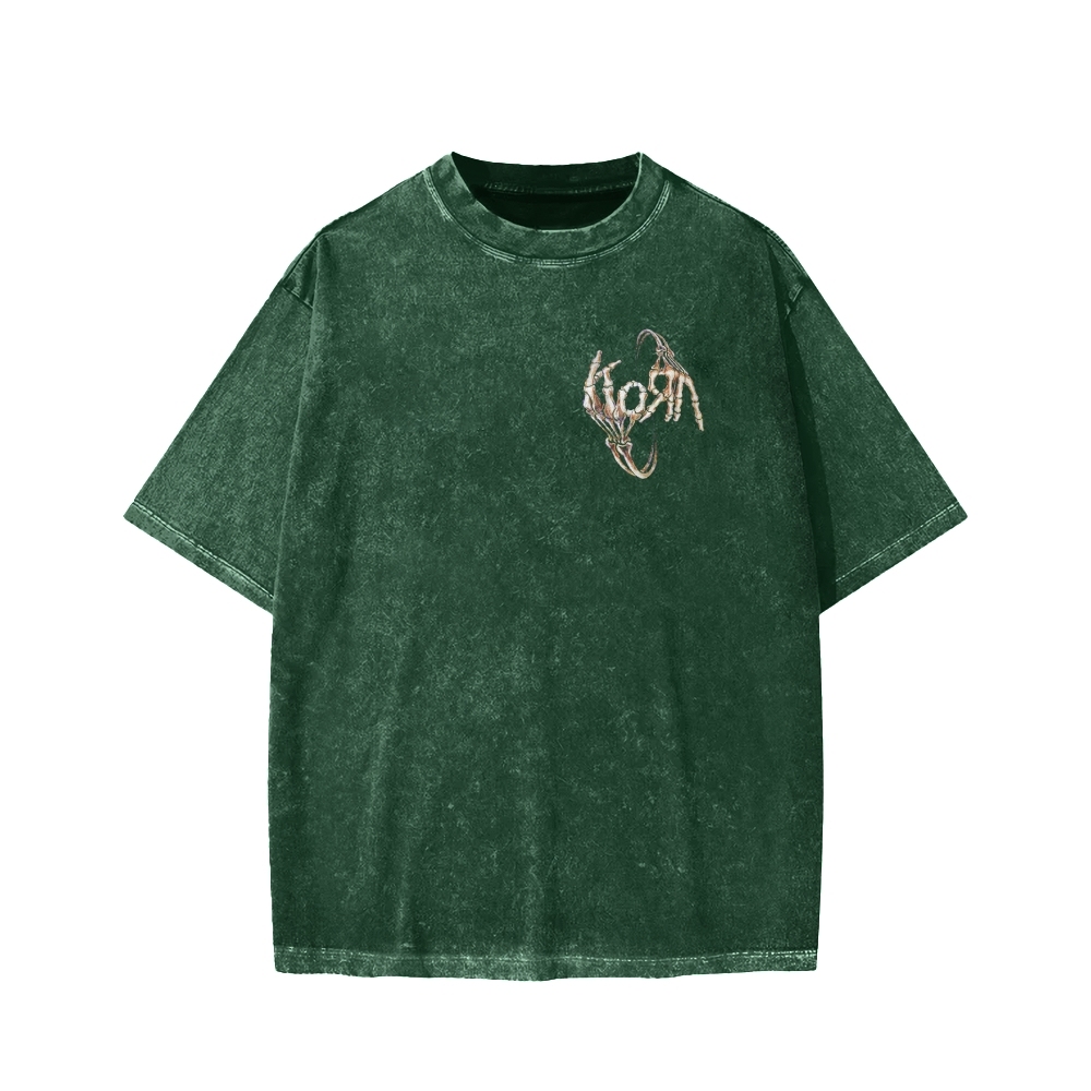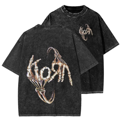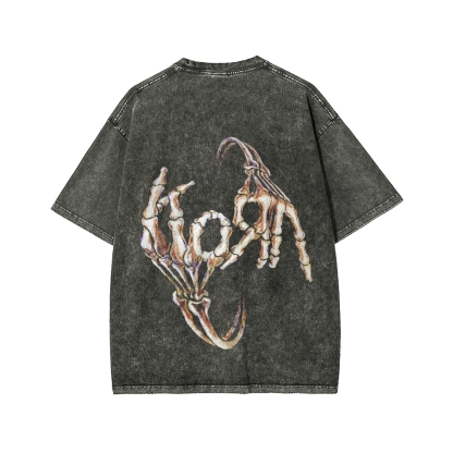 Skeleton Fingers KORN Front And Back Printing Washed T-shirt