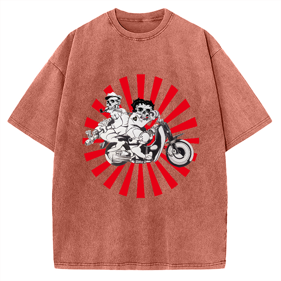 Skeleton Riding Motorcycle Vintage Washed T-shirt