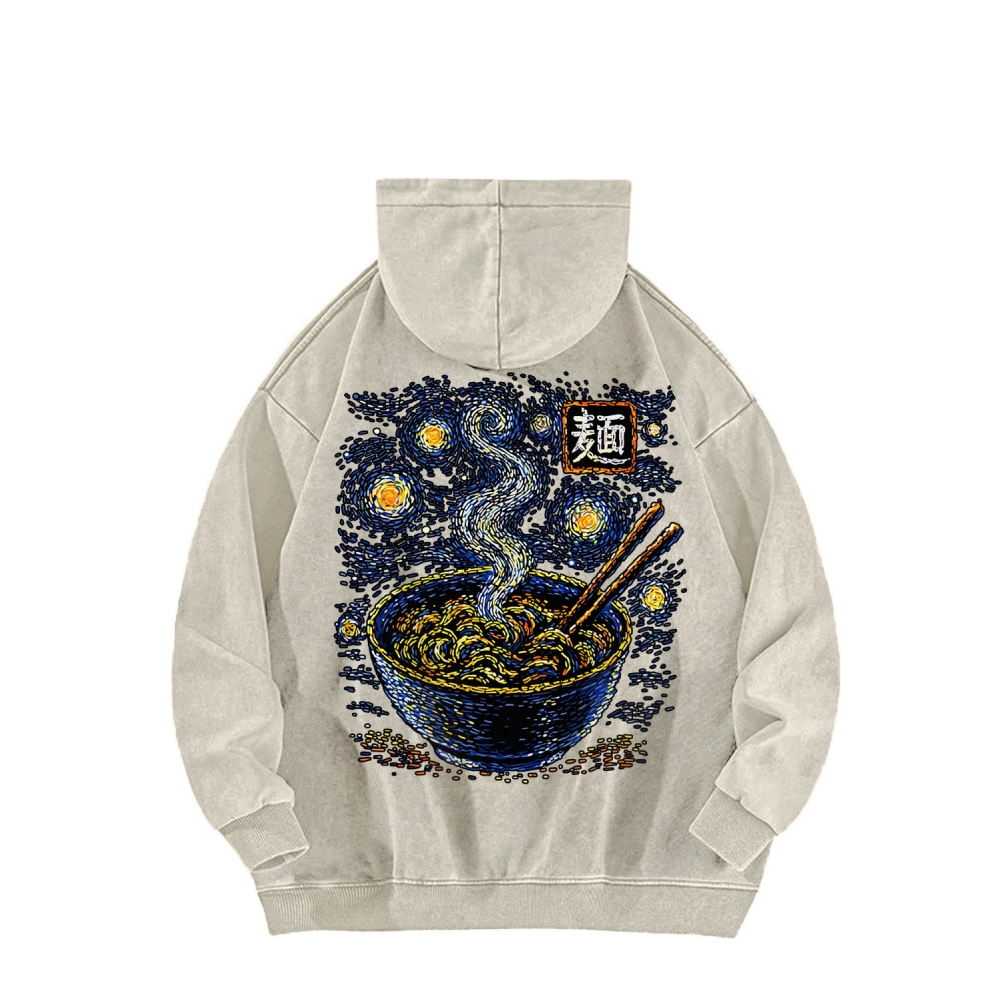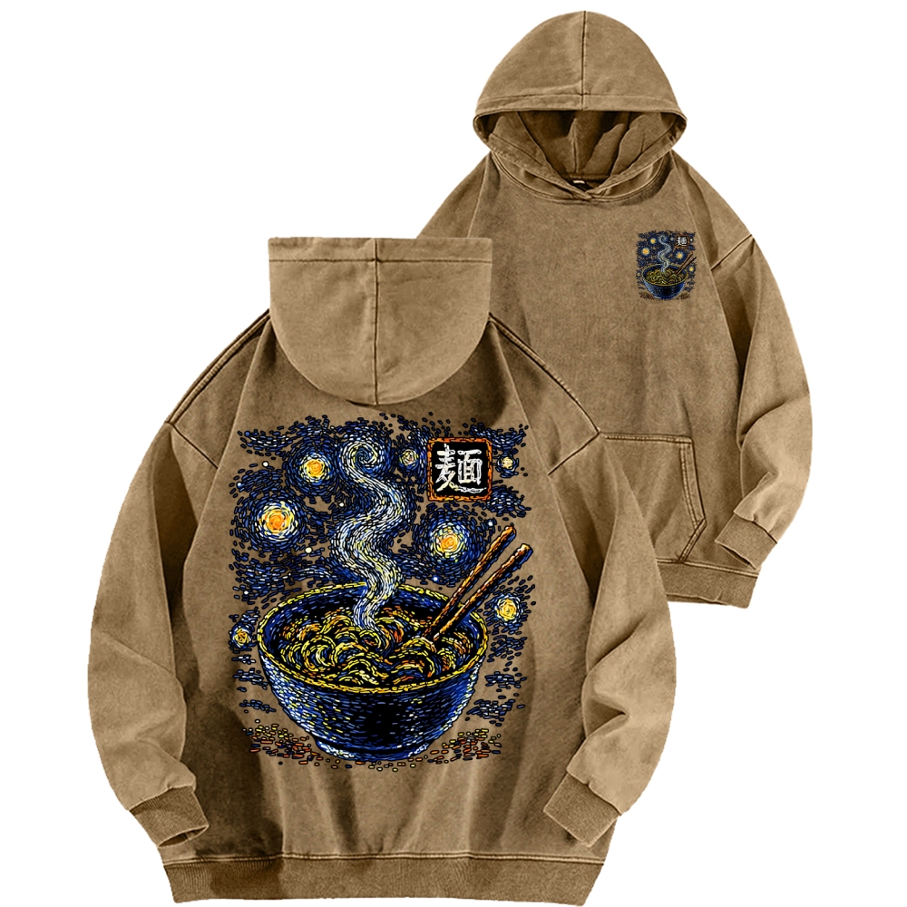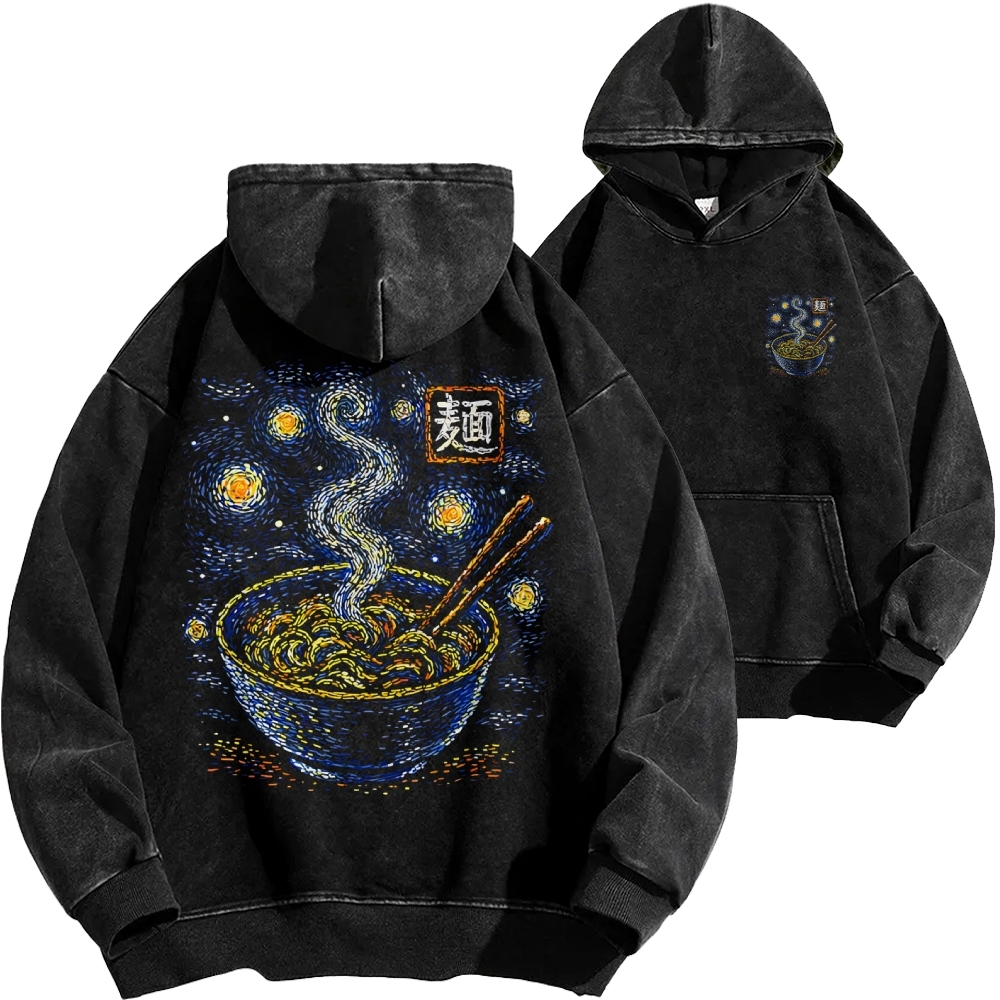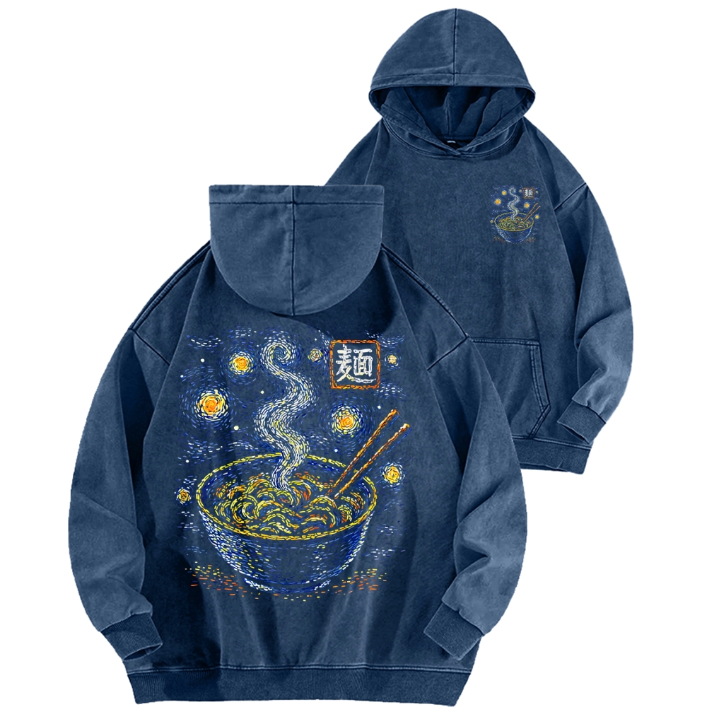 Starry Noodles Front And Back Printing Vintage Washed Hoodie