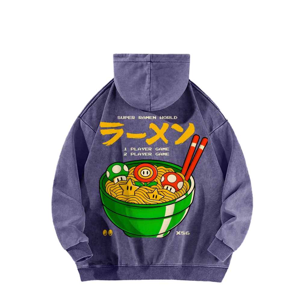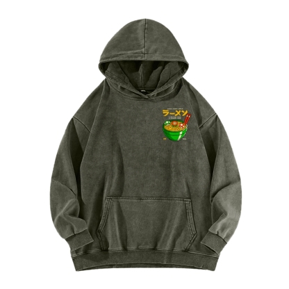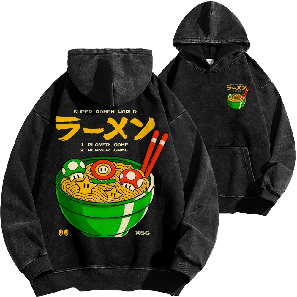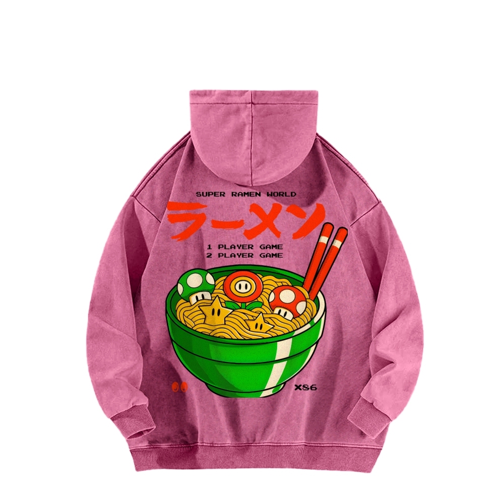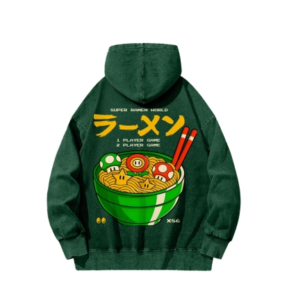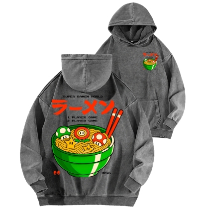 Super Ramen World Front And Back Printing Vintage Washed Hoodie
