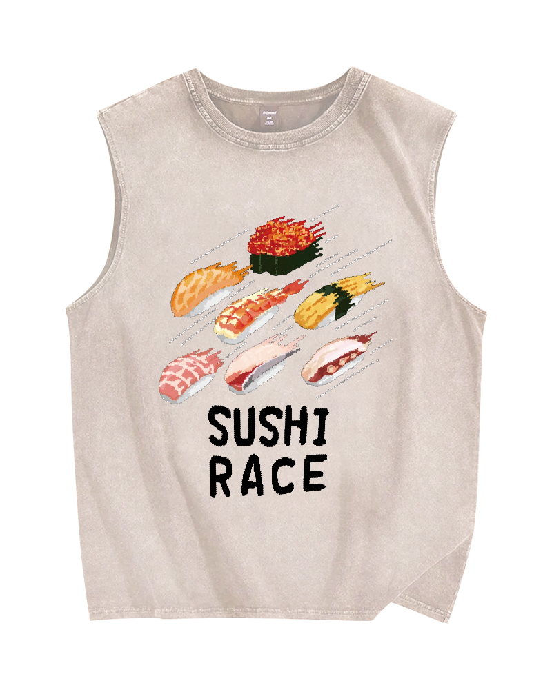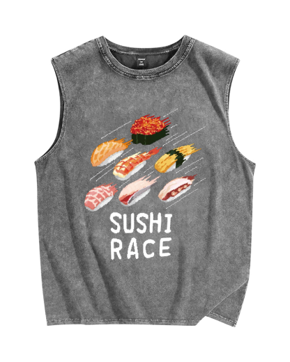 Sushi race Vintage Distressed Washed Tank Top