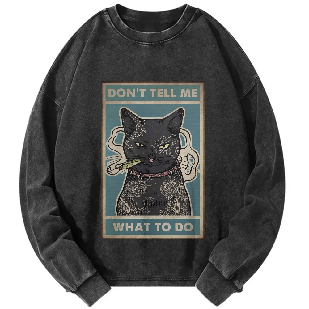 Tattoo Cat Don't Tell Me What to Do Vintage Washed Sweatshirts