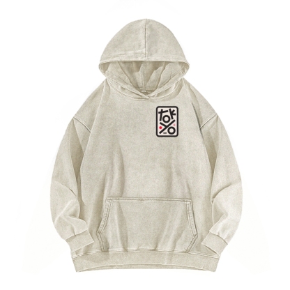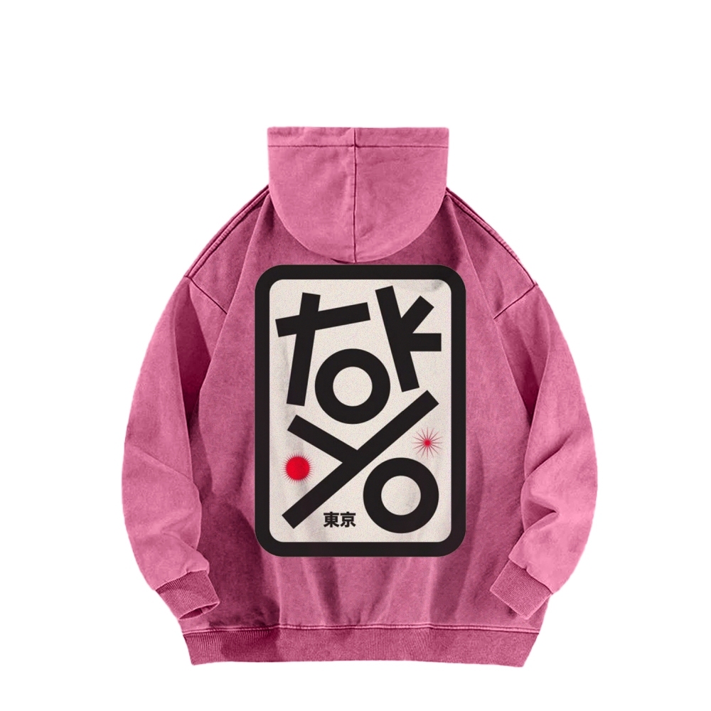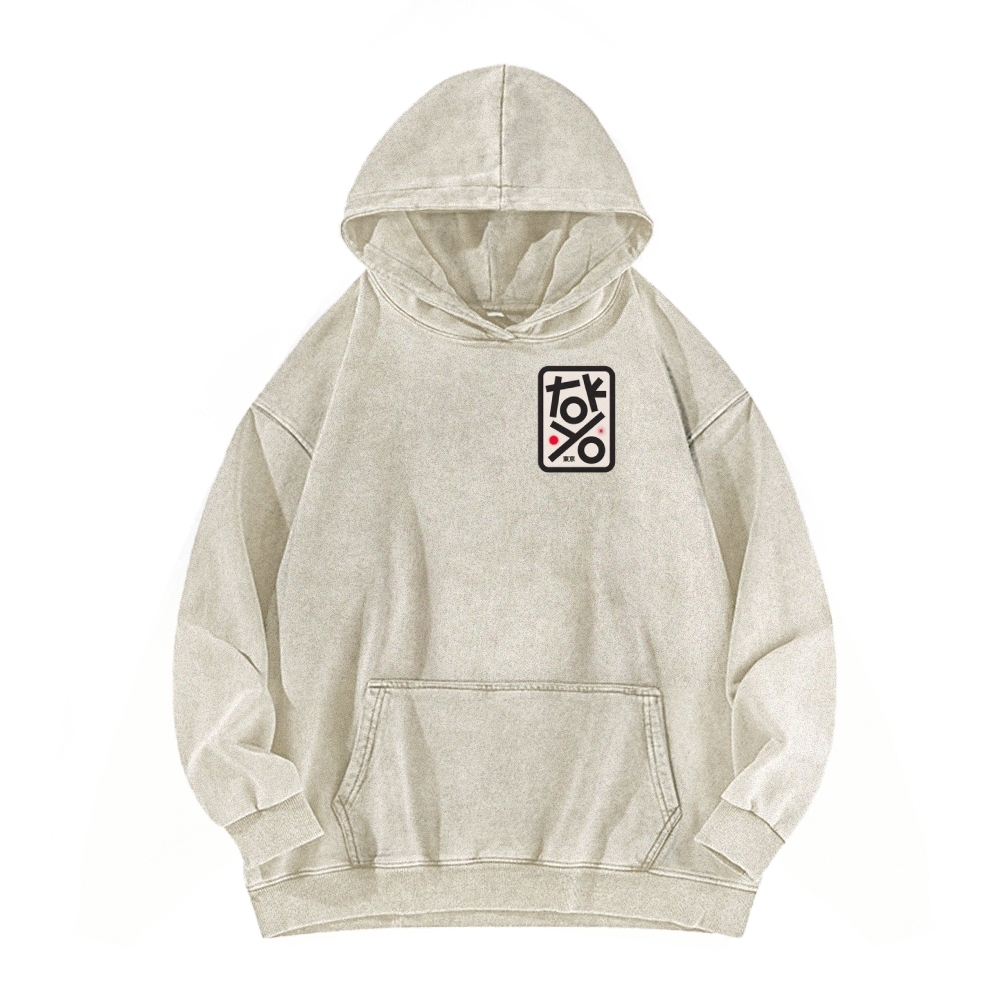 Tokyo Front And Back Printing Vintage Washed Hoodie