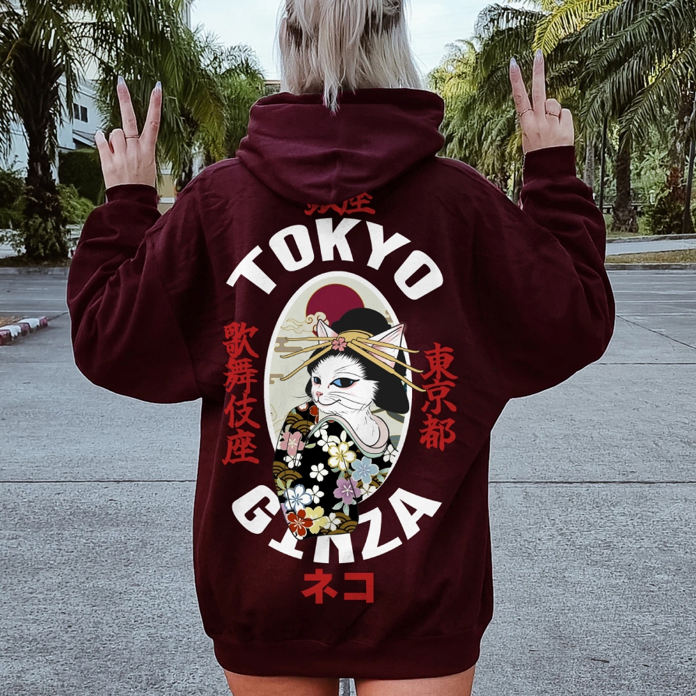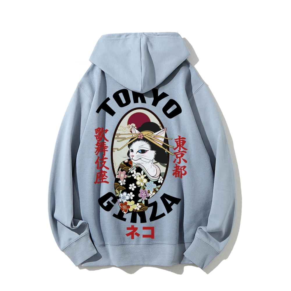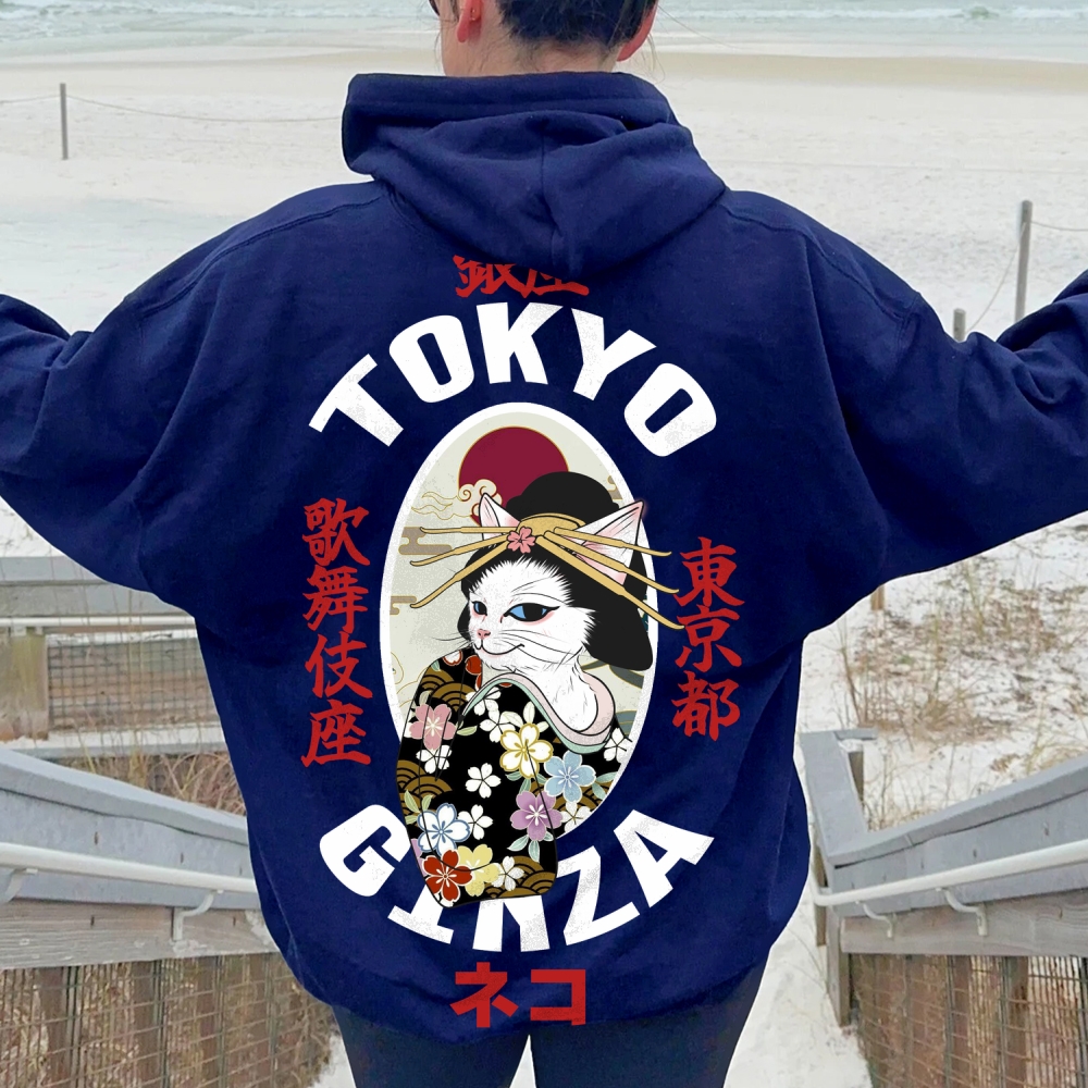 Tokyo Ginza Cat Printed Back Cotton Hoodie