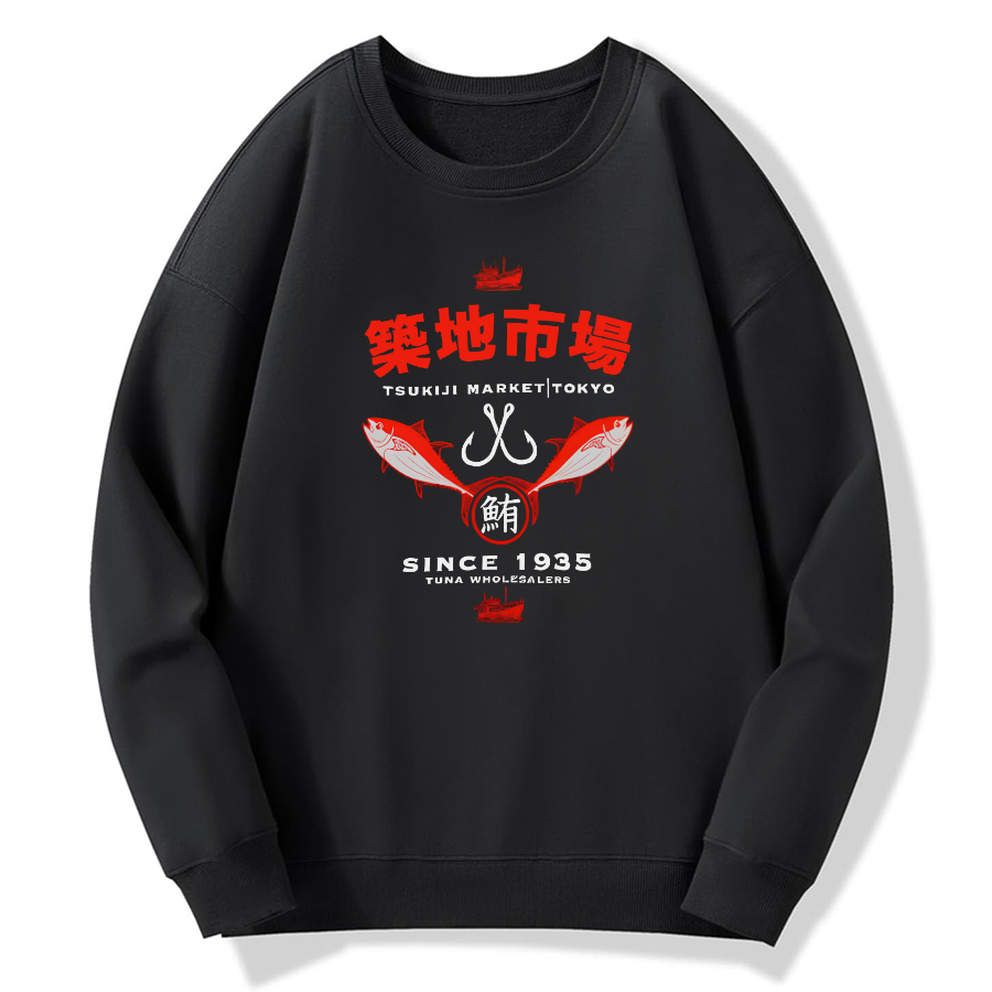Tokyo Tsukiji Market Cotton Pullover Sweatshirt