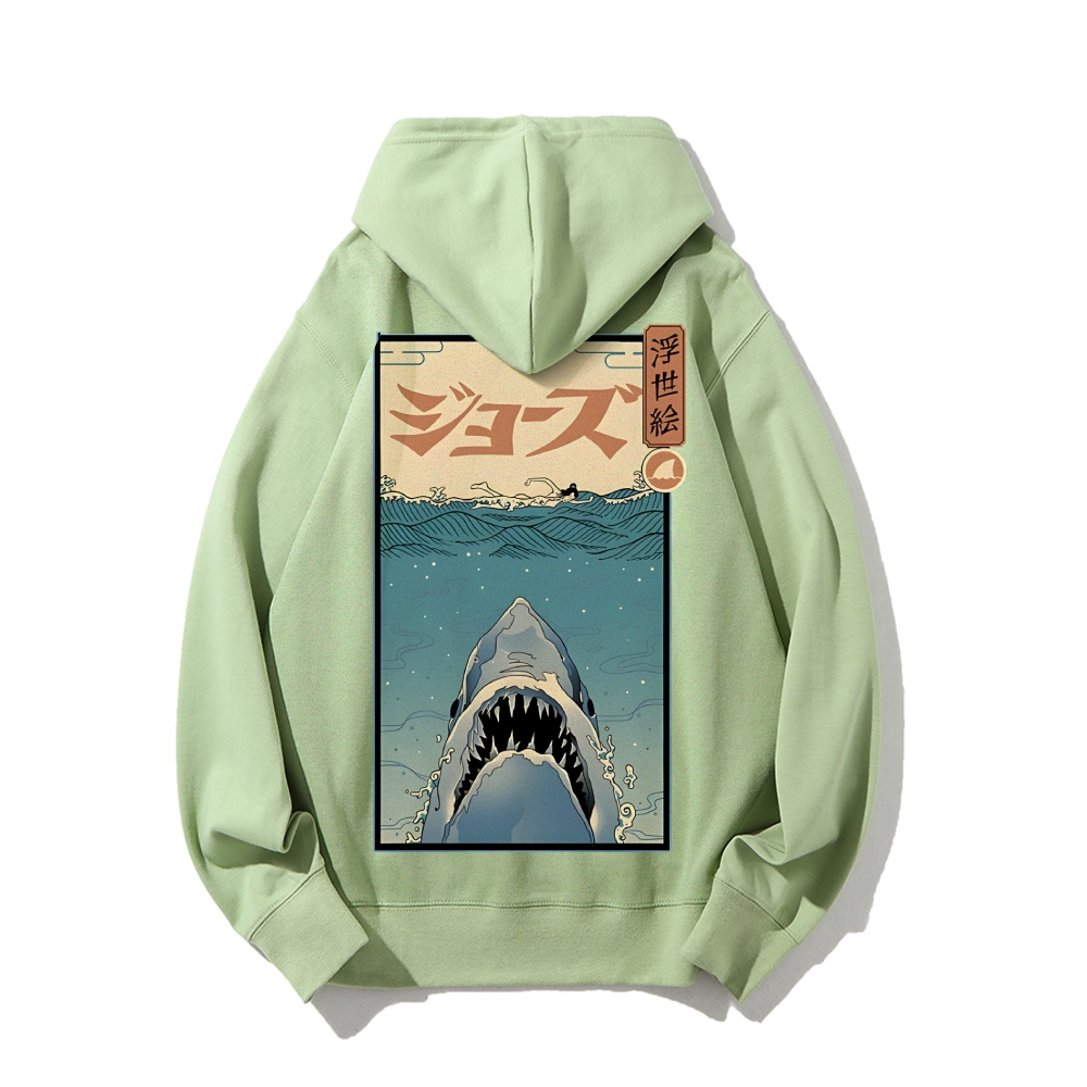 Ukiyo-e Shark Printed Back Cotton Hoodie