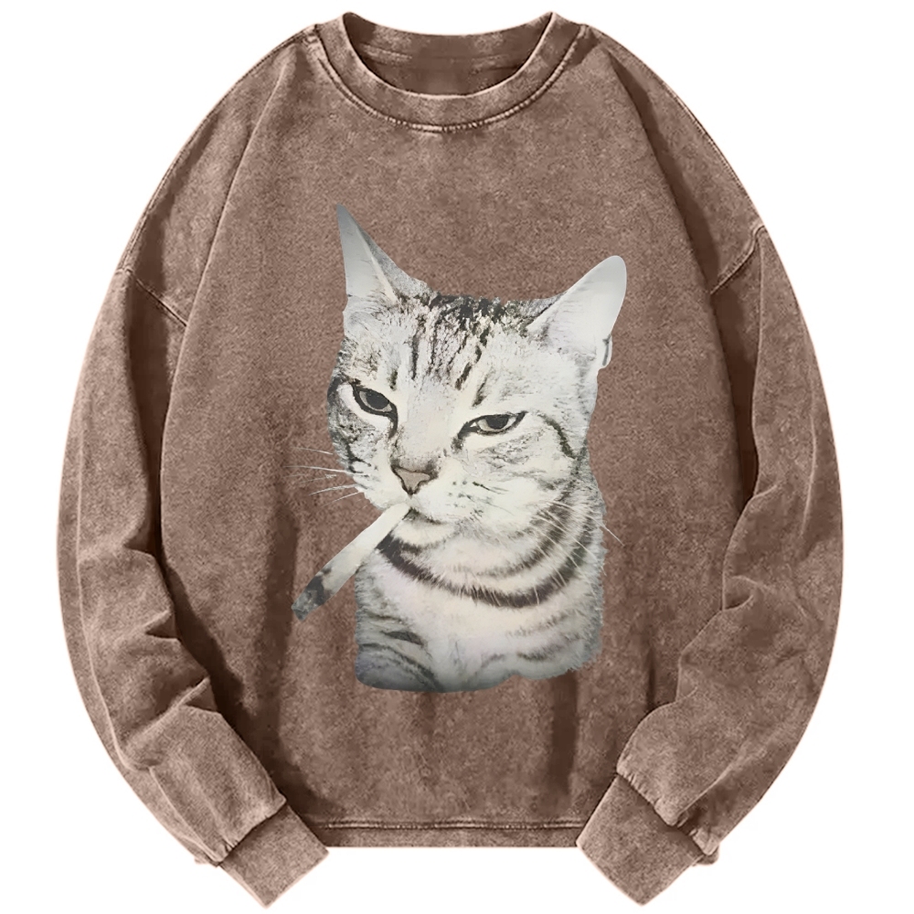 Vintage Smoking Cat Meme Vintage Washed Sweatshirts
