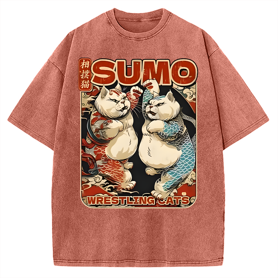 Wrestling Sumo Cats Vintage Washed T-shirt