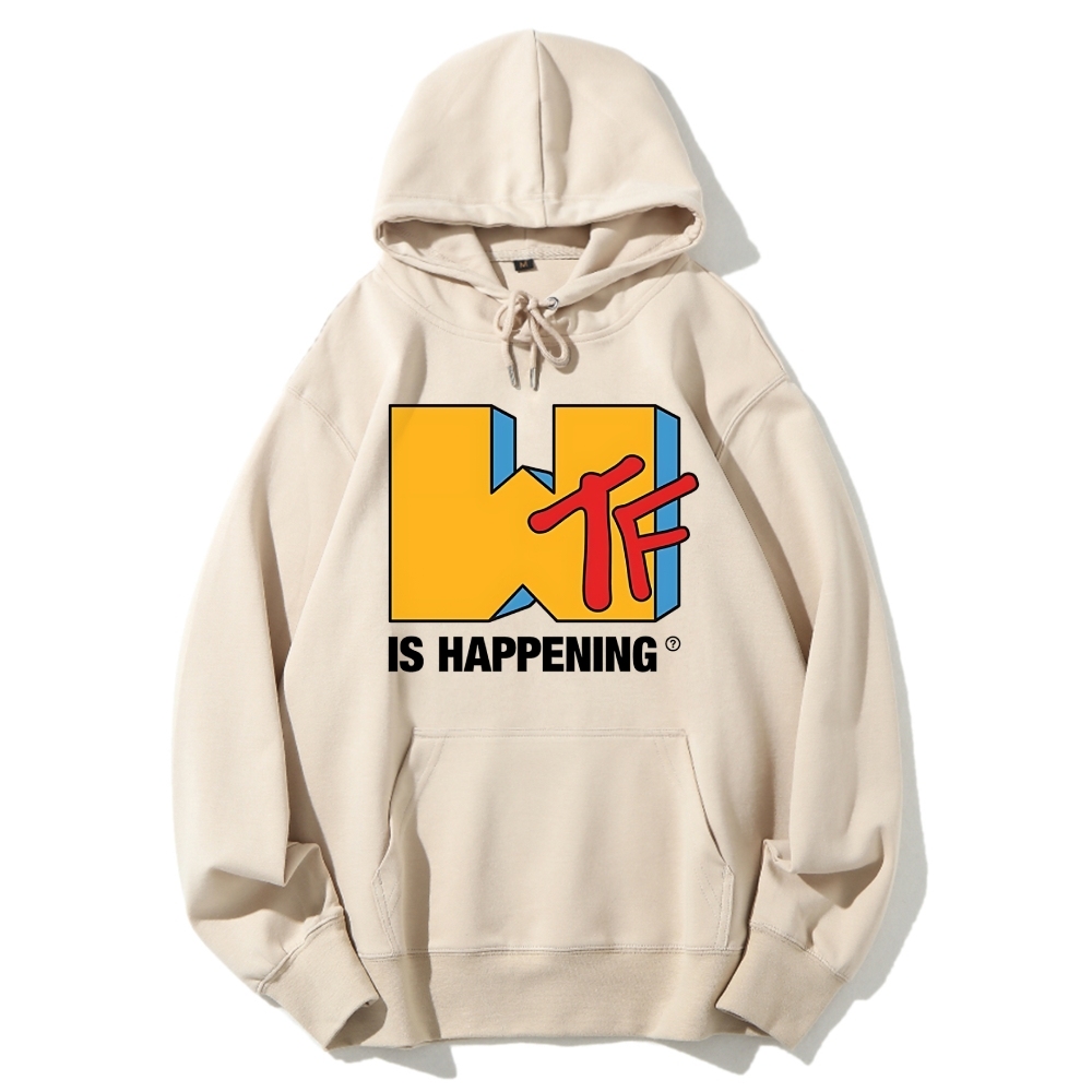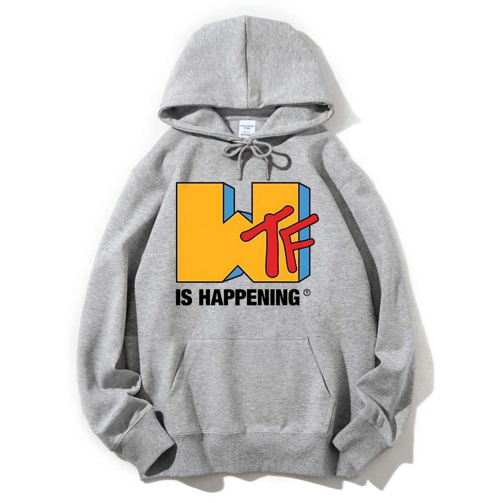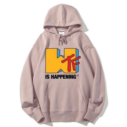 WTF Is Happening Funny Logo Cotton Hoodie