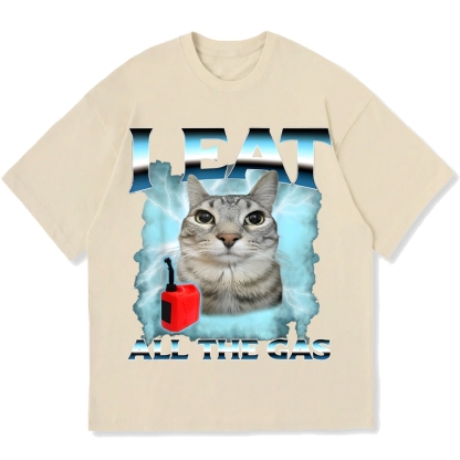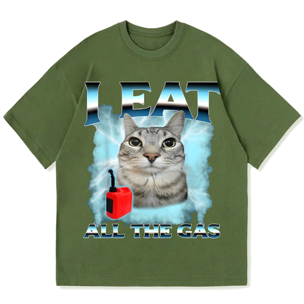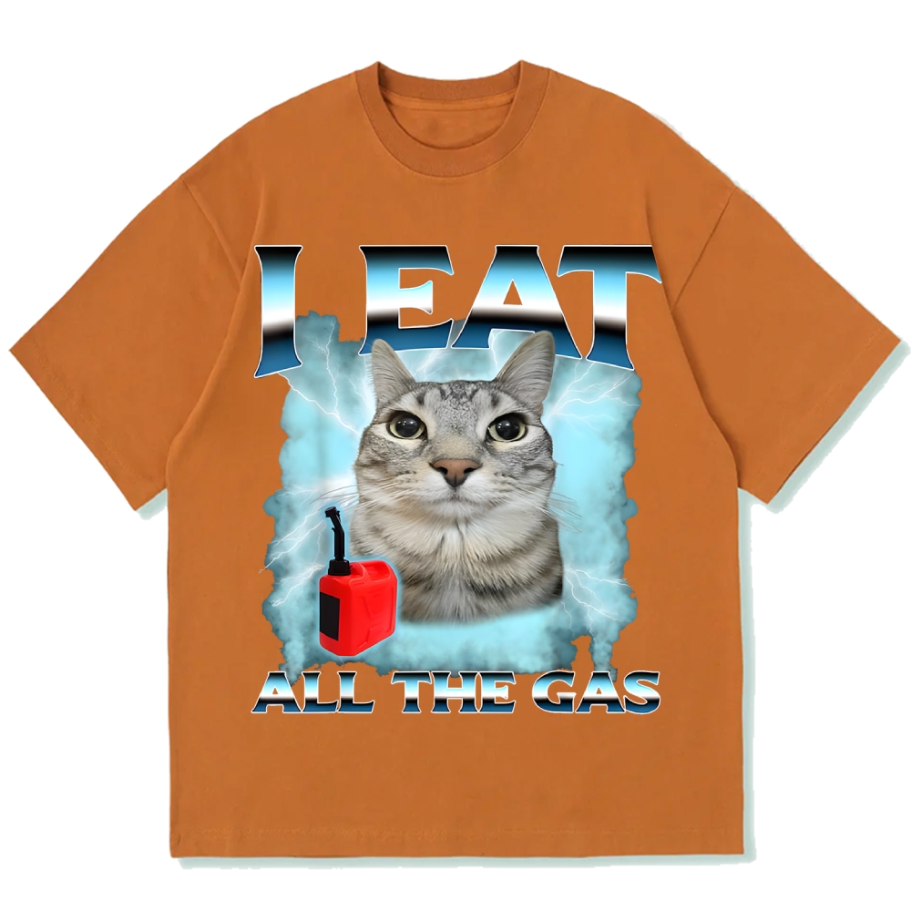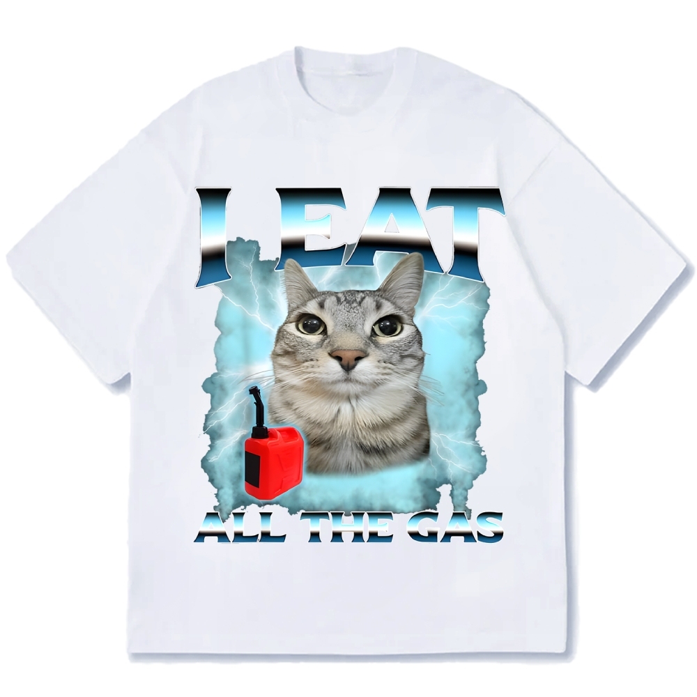 I Eat All The Gas Cat Meme Cotton casual T-shirt