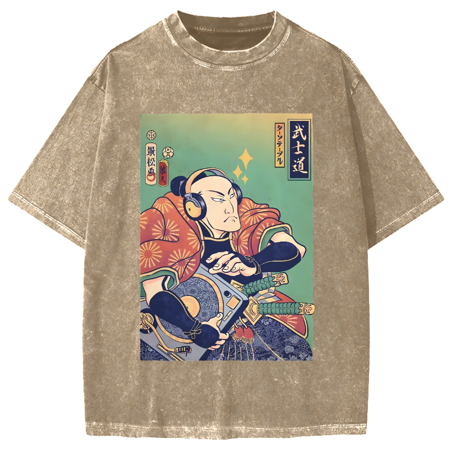 DJ Samurai Music Ukiyo-e Vintage Washed T-shirt