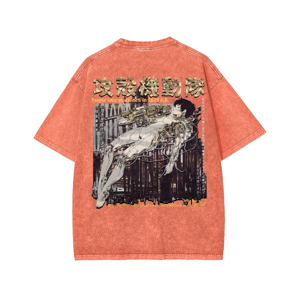Ghost Shell Machine Anime Girl Cyberpunk Front And Back Printing Washed T-shirt