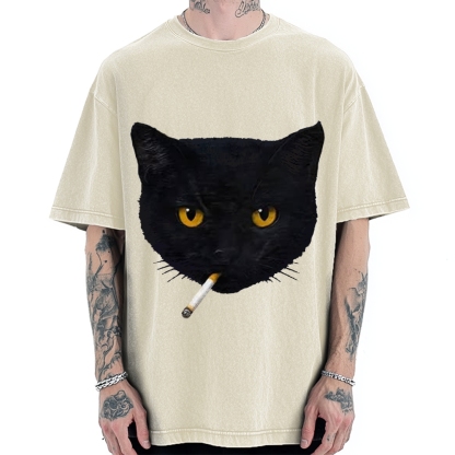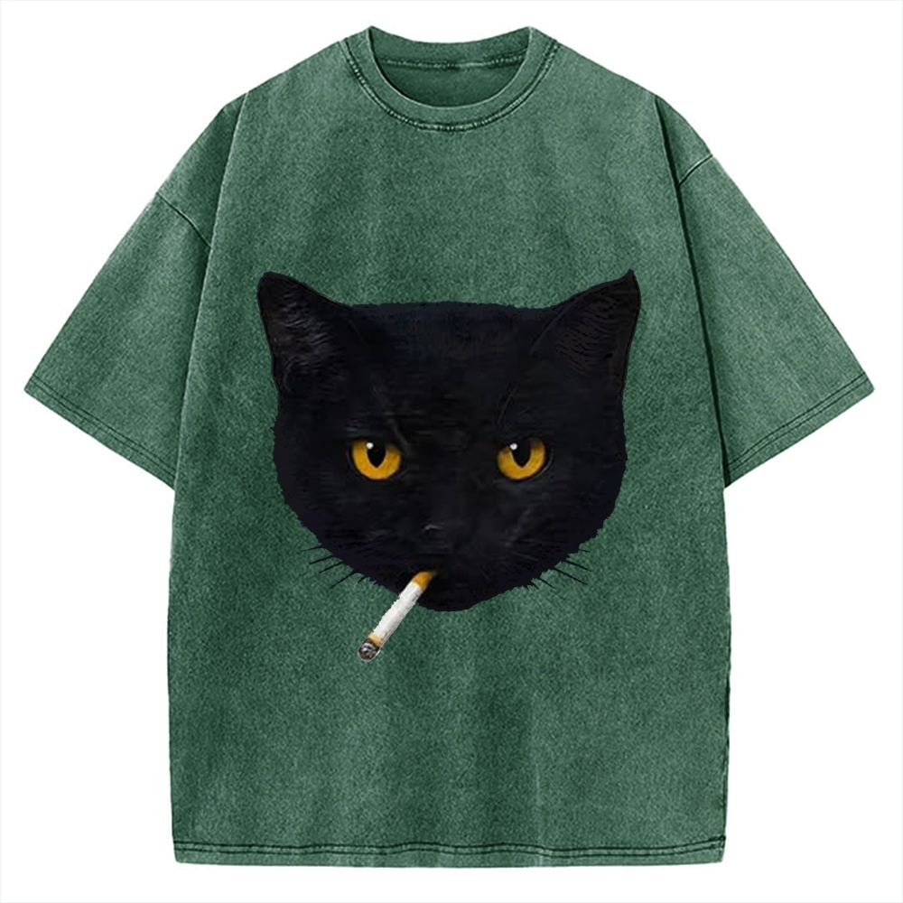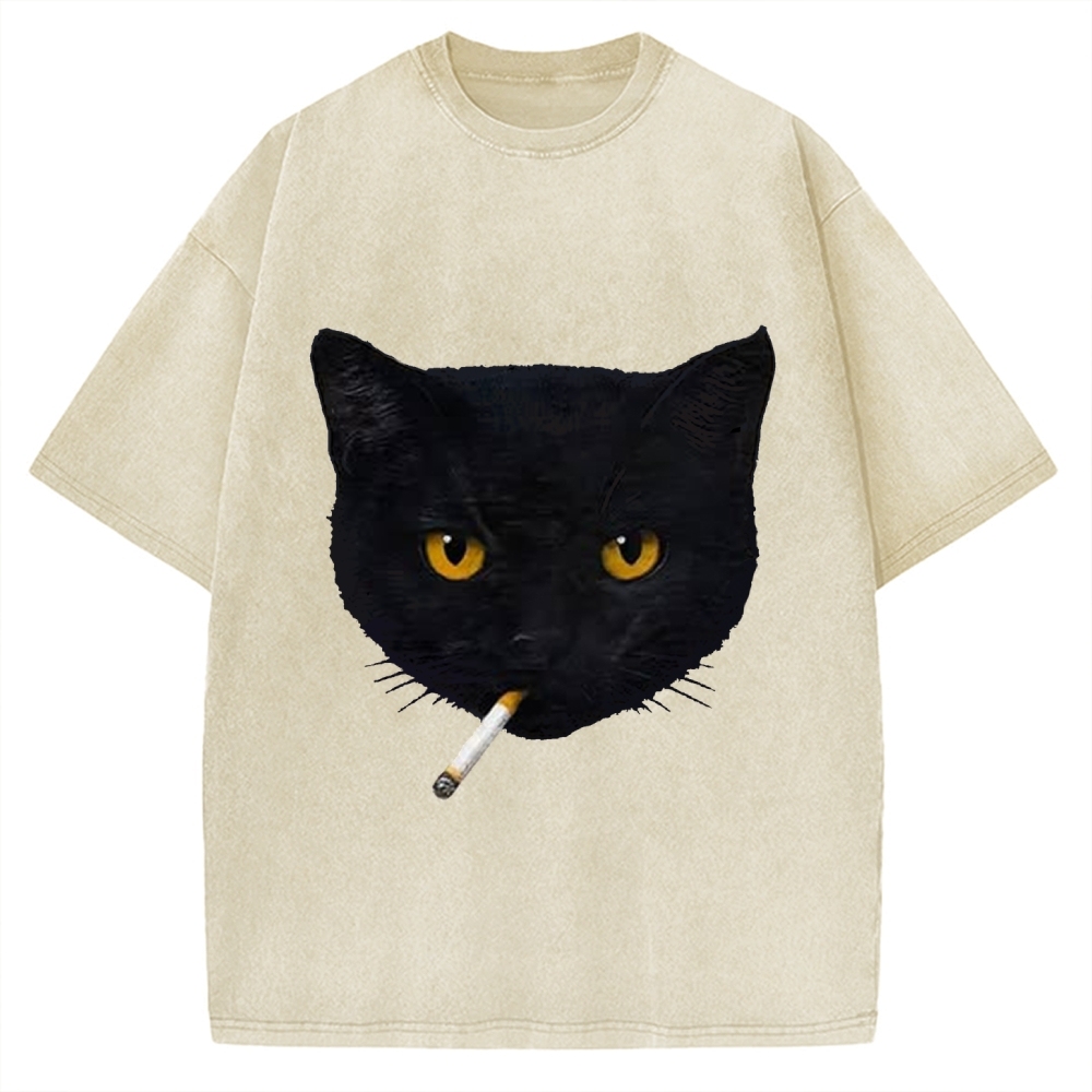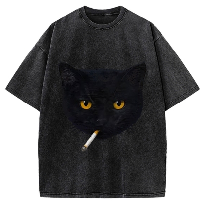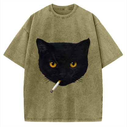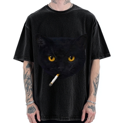 Smoking Cat Vintage Washed T-shirt