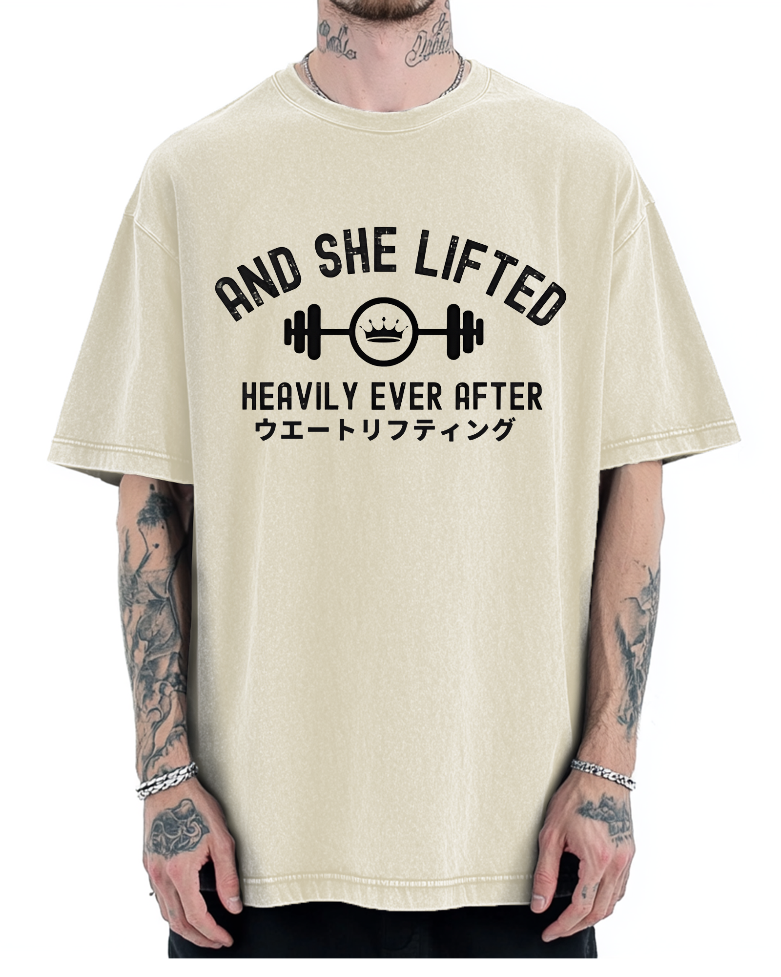 And She Lifted Heavily Ever after Weightlifting Vintage Washed T-shirt