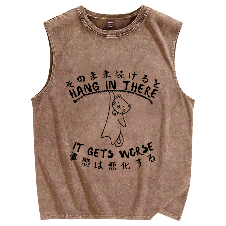 Hang In There It Gets Worse Motivational Quotes Vintage Distressed Washed Tank Top