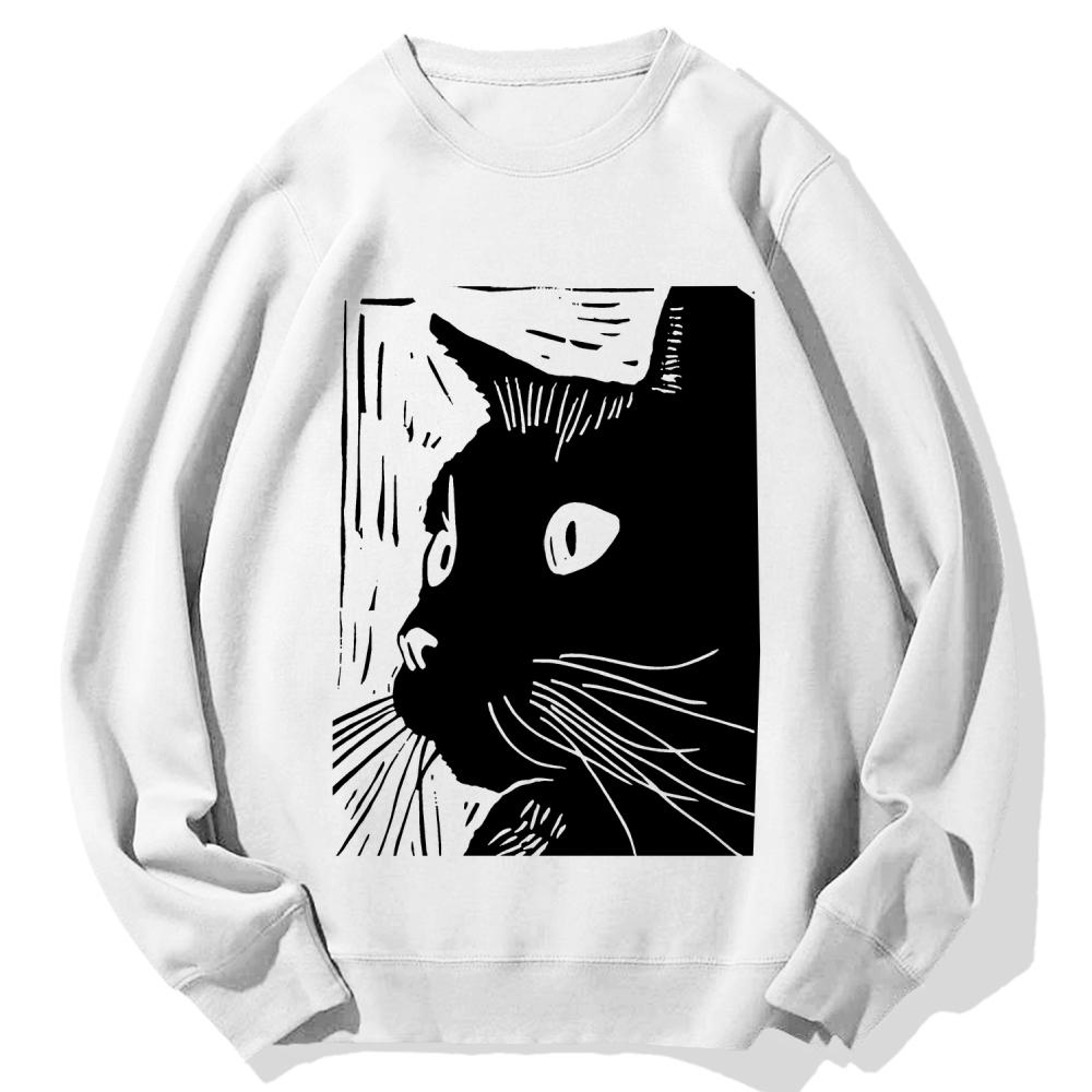 Intage Cat Graffiti Printed Cotton Sweatshirt