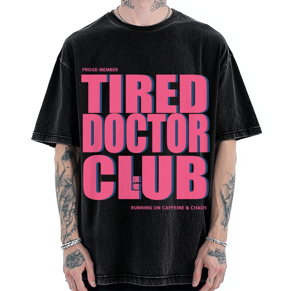 Tired Doctor Club Japanese Katakana Vintage Washed T-shirt