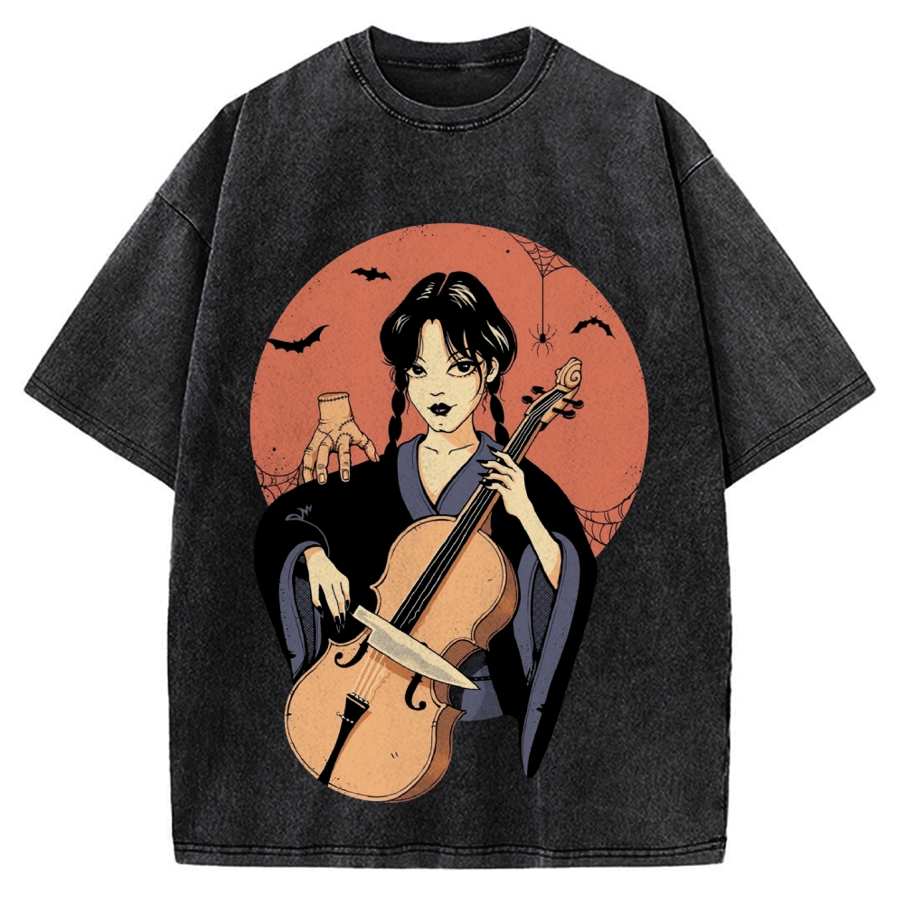 Wednesday Girl Horror Anime Style Addams Family Vintage Washed T-shirt