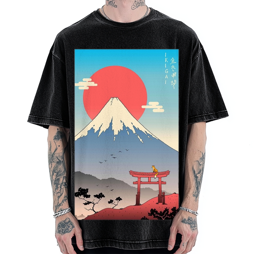 Japanese landscape painting Torii & Mt Fuji Vintage Washed T-shirt