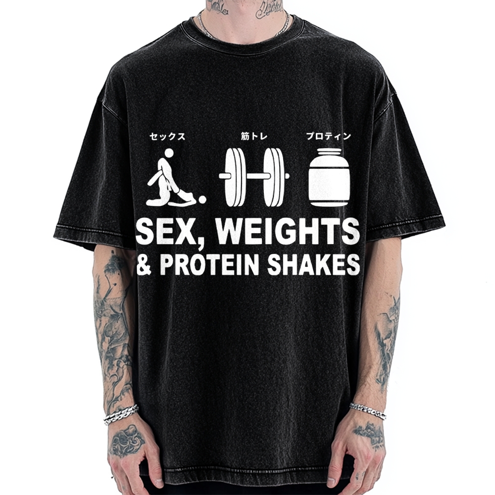 Sex Weights & Protein Shakes Fitness Vintage Washed T-shirt