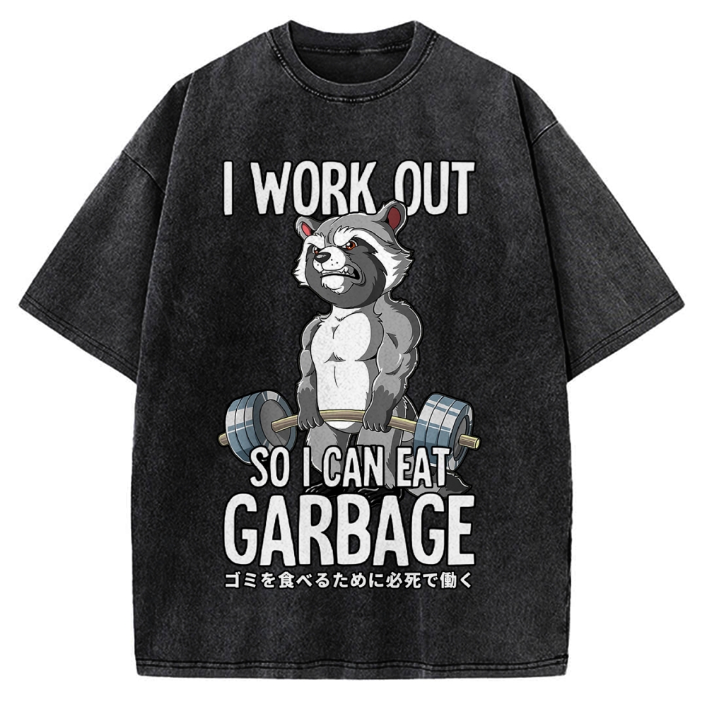I Work Out So I Can Eat Garbage Fitness Raccoon Funny Japanese Vintage Washed T-shirt