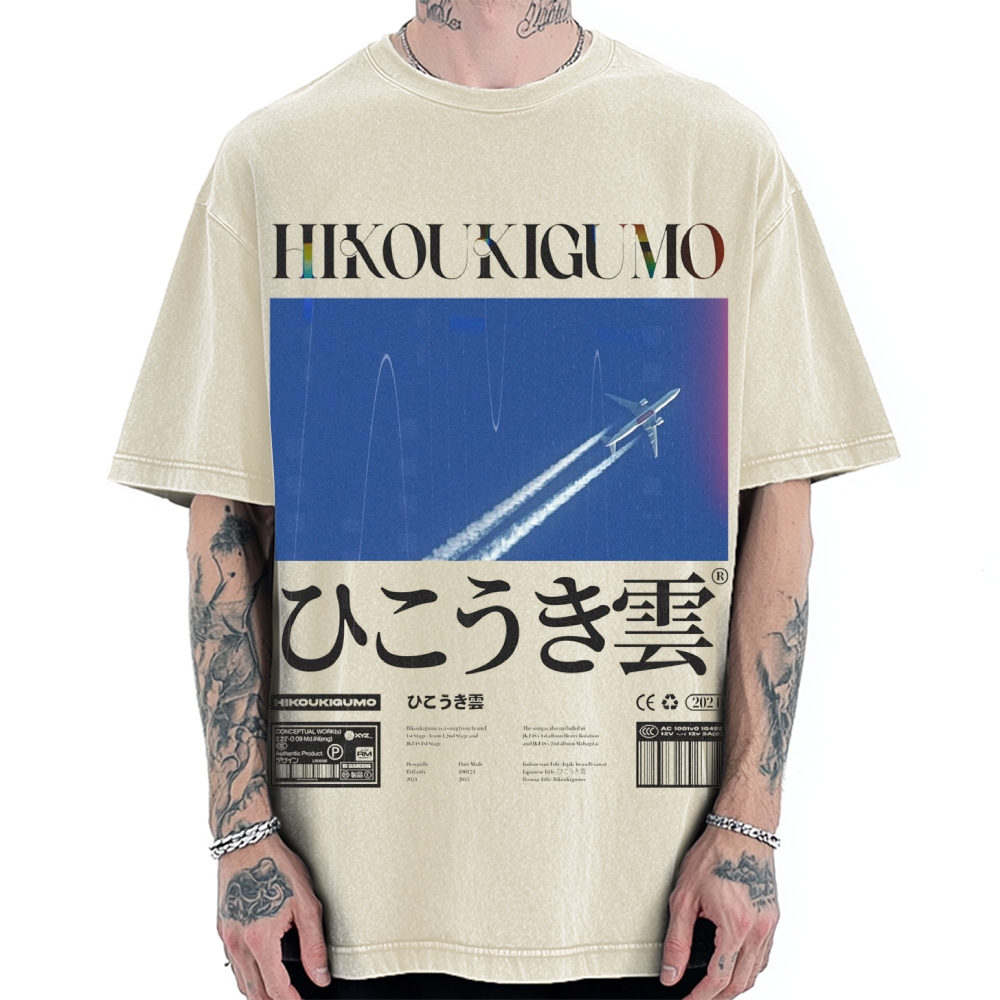 Japanese Flying plane cloud Japanese graphic design Vintage Washed T-shirt
