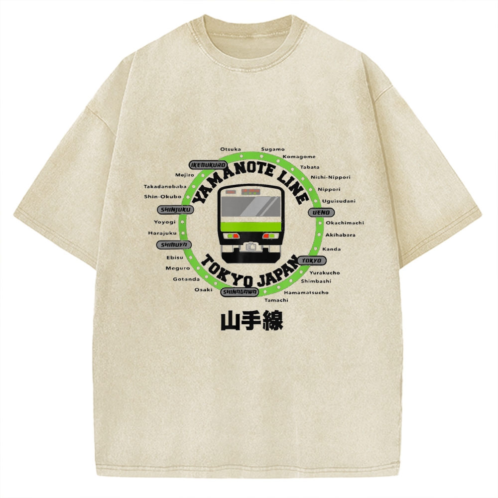 Yamanote Line Loop Line Vintage Washed T-shirt
