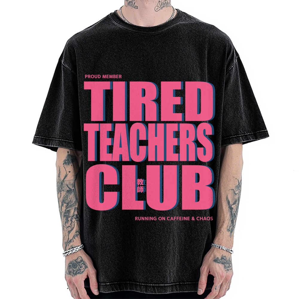 Tired Teachers Club Japanese Katakana Vintage Washed T-shirt