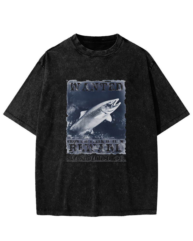 Retro Slogan Fish Pattern Vintage Distressed T-shirt