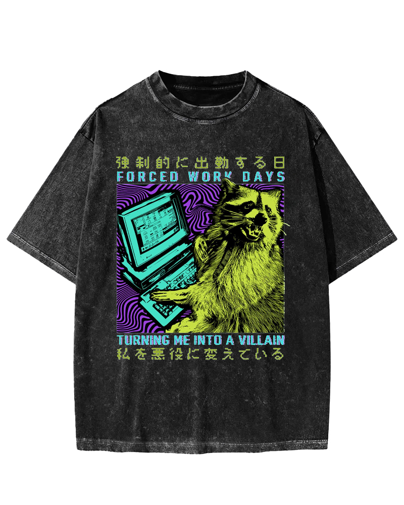 Japanese Cute Animal Pattern Vintage Distressed T-shirt