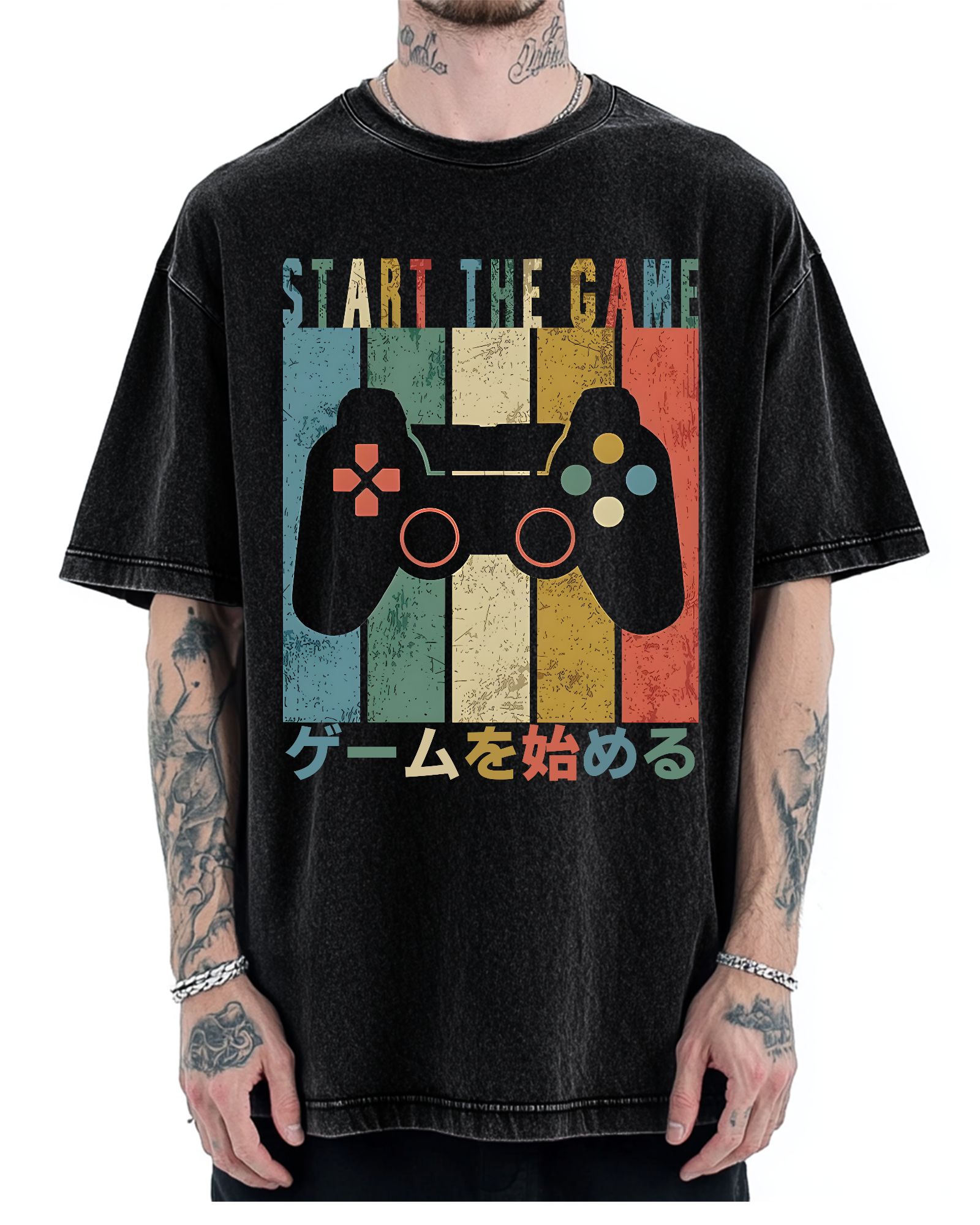 Funny QRcode Back printing Vintage Washed T-shirt