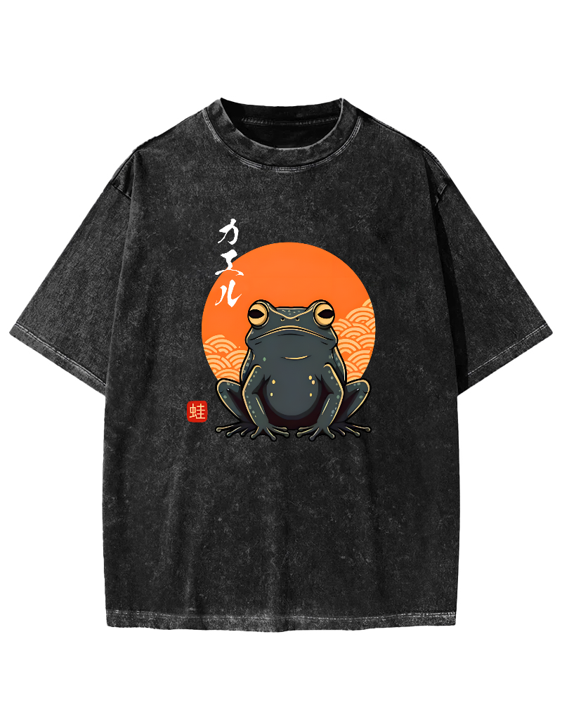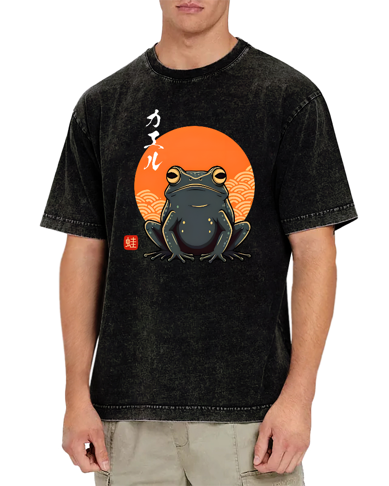 Ukiyo-e Fuji Mountain Cat Vintage Washed T-shirt