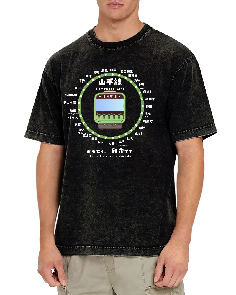 Yamanote Line Map & Info Vintage Washed T-shirt