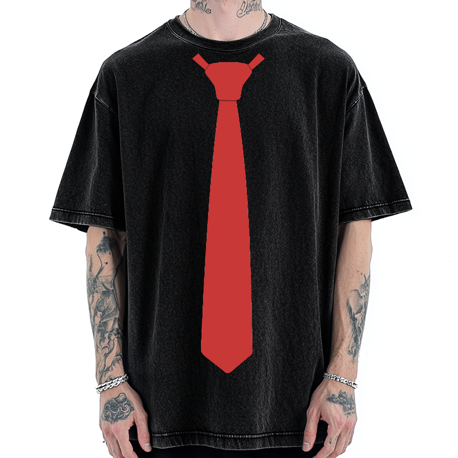 Red Tie Japanese salaryman cosplay Vintage Washed T-shirt
