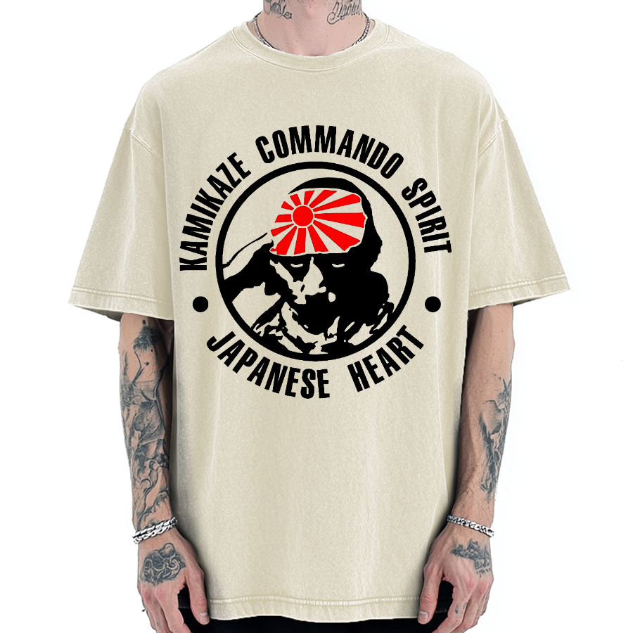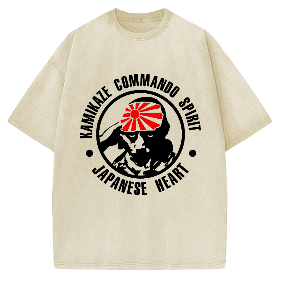 Japanese Heart Kamikaze Commando Spirit Vintage Washed T-shirt