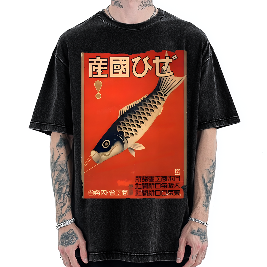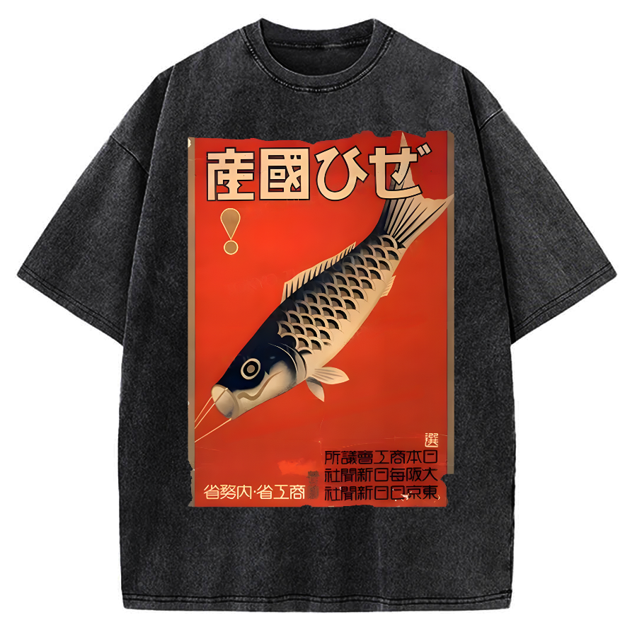 Japanese Carp Streamer Poster Vintage Washed T-shirt