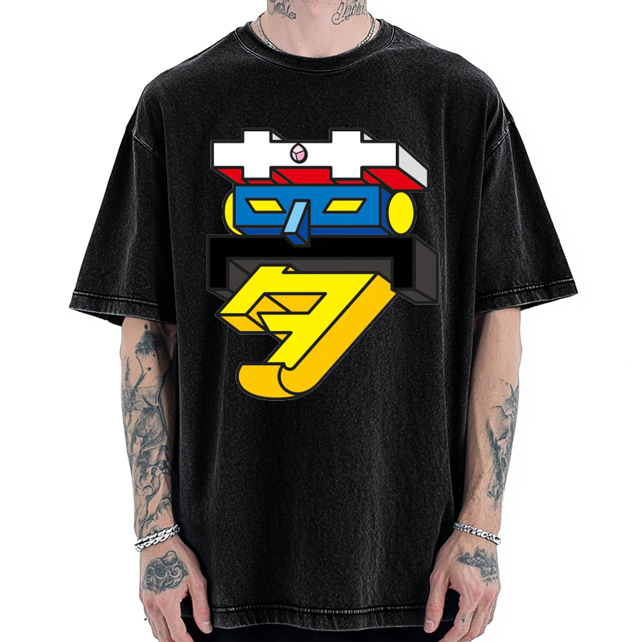 Interstellar Robot Daruma Cyberpunk Style Vintage Washed T-shirt