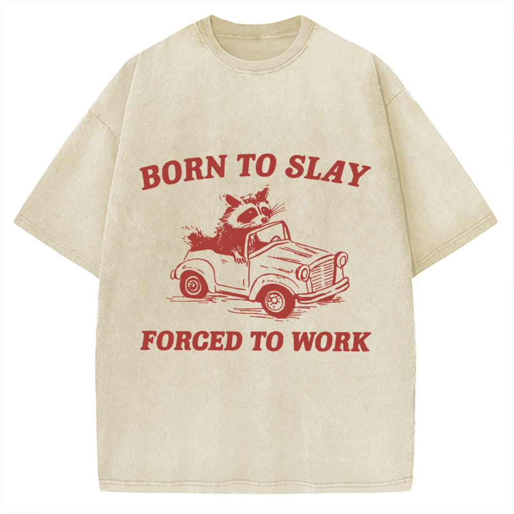 Born to Slay Forced To work Raccoon driving a car Vintage Washed T-shirt