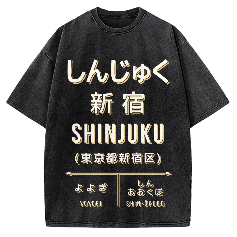 Shinjuku Station Densha Train Yoyogi Shi-Okubo Vintage Washed T-shirt