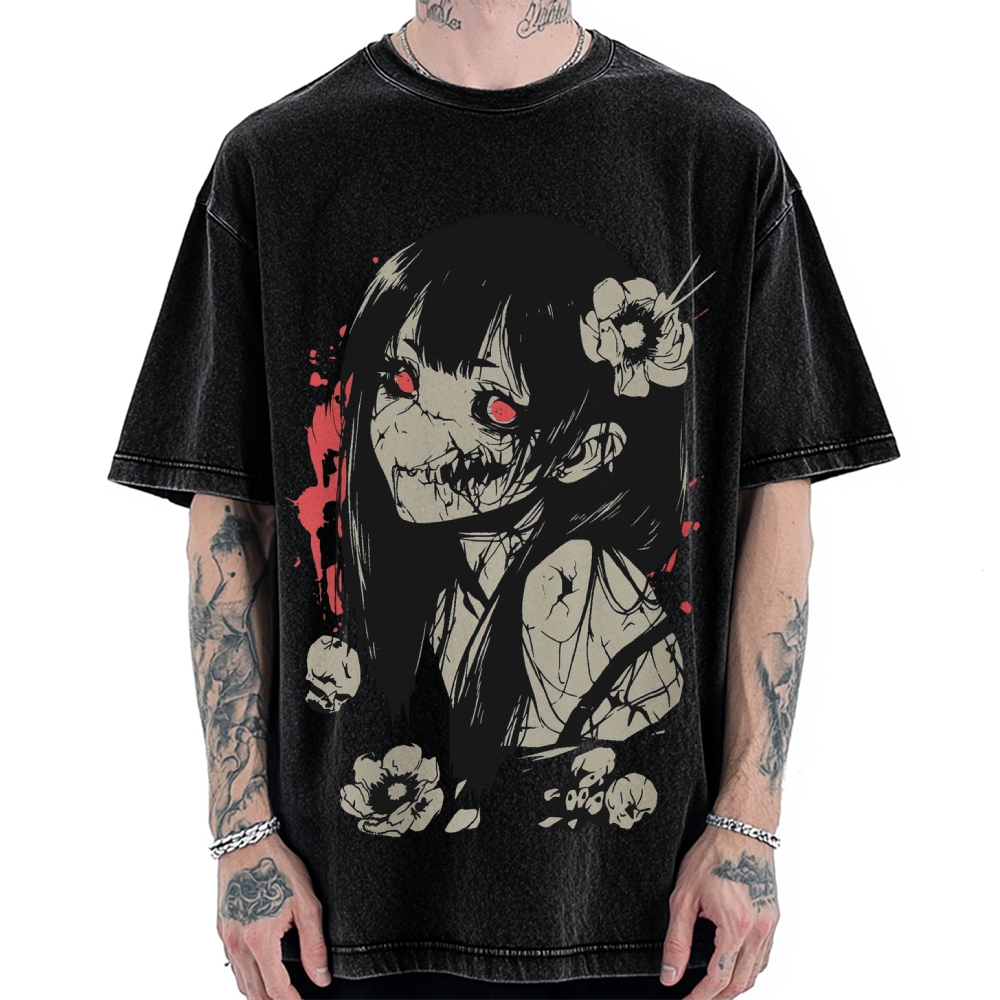 Japanese Girl Creepy anime eyes Vintage Washed T-shirt