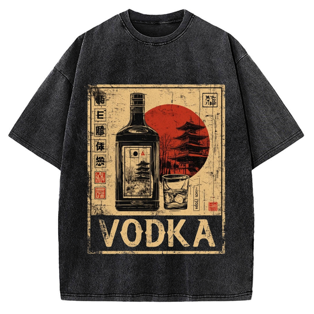 Japanese Vodka Sake Alcohol & Pagoda Vintage Washed T-shirt