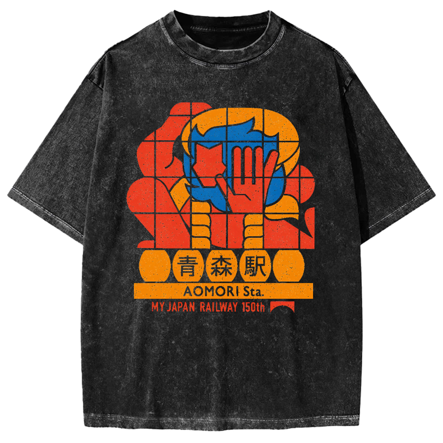 Aomori Station of Japan Railways Vintage Washed T-shirt