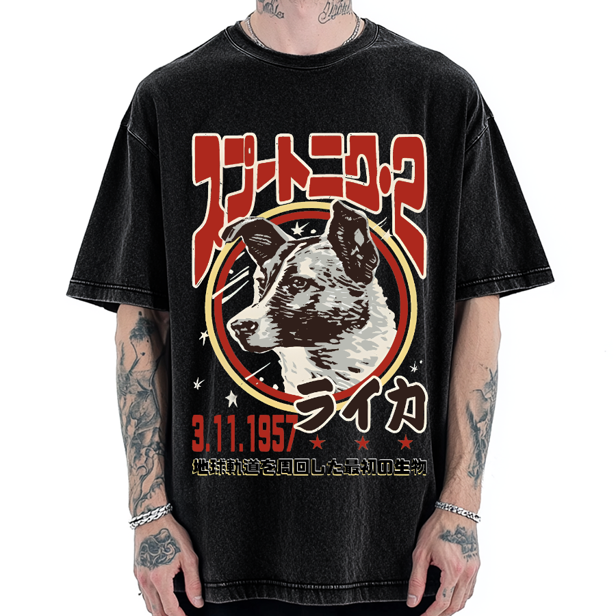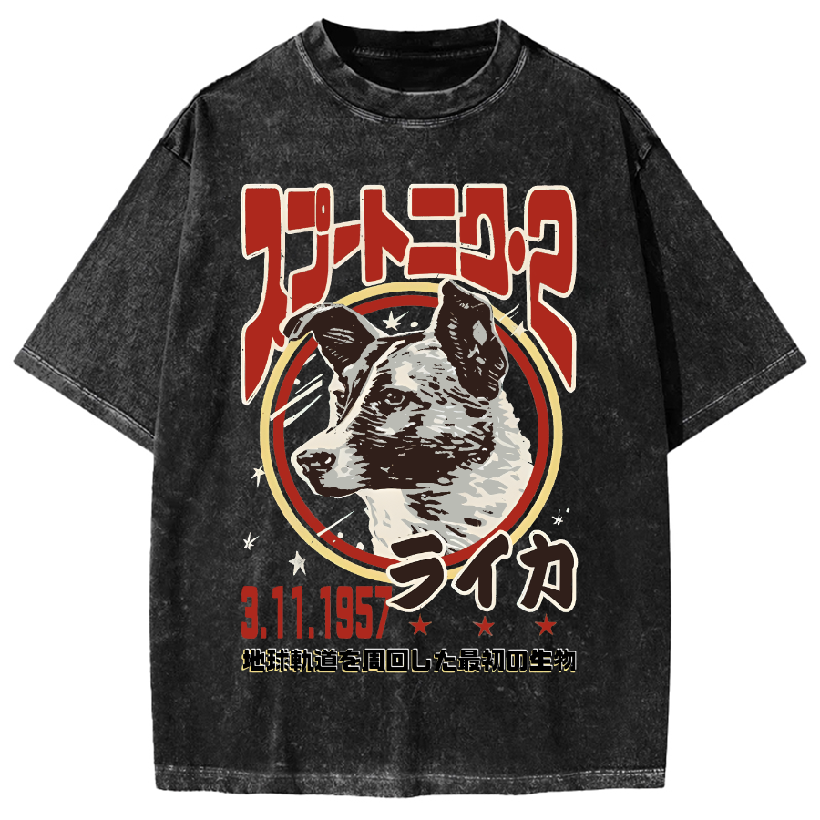 Space Dog Laika Japanese Poster Vintage Washed T-shirt