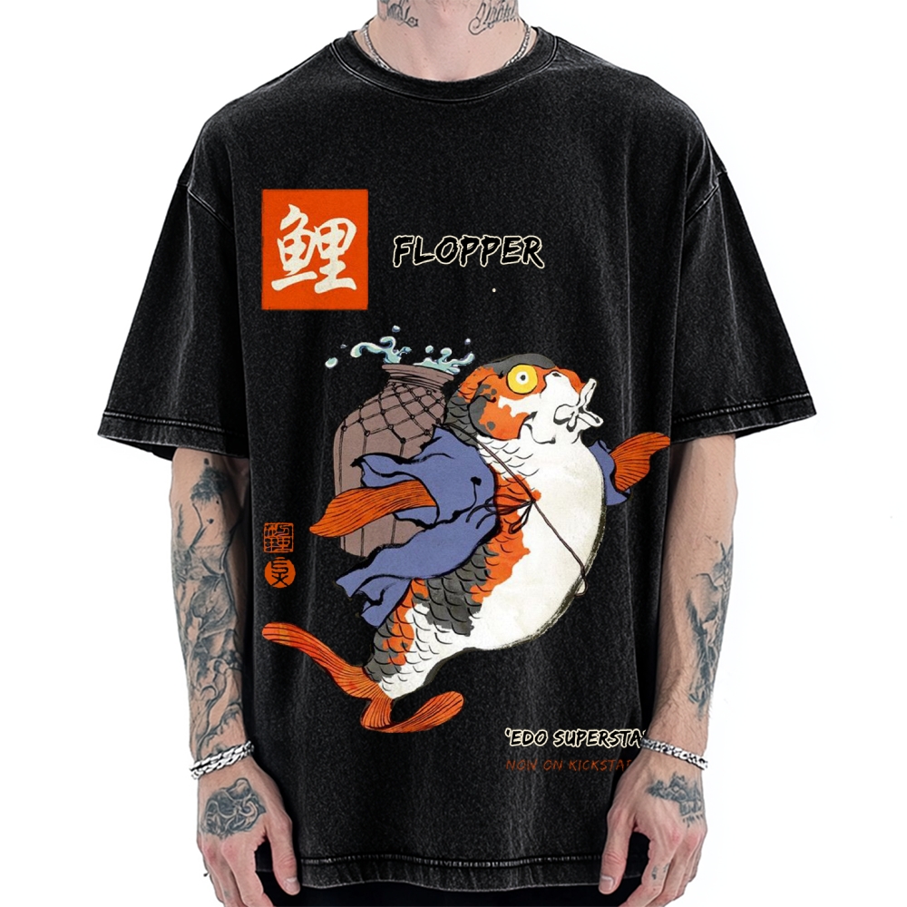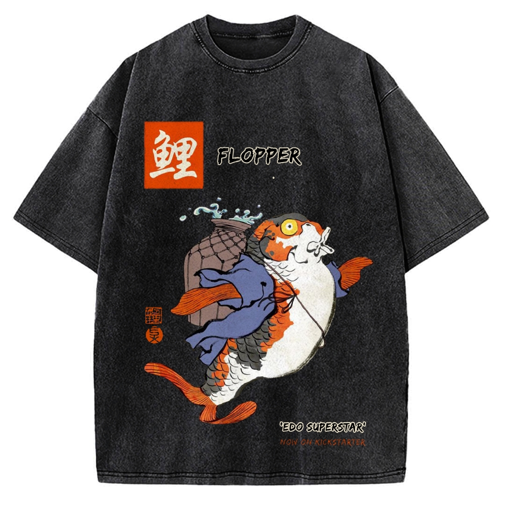 Japanese traditional painting Sumi-e Crap Painting Vintage Washed T-shirt