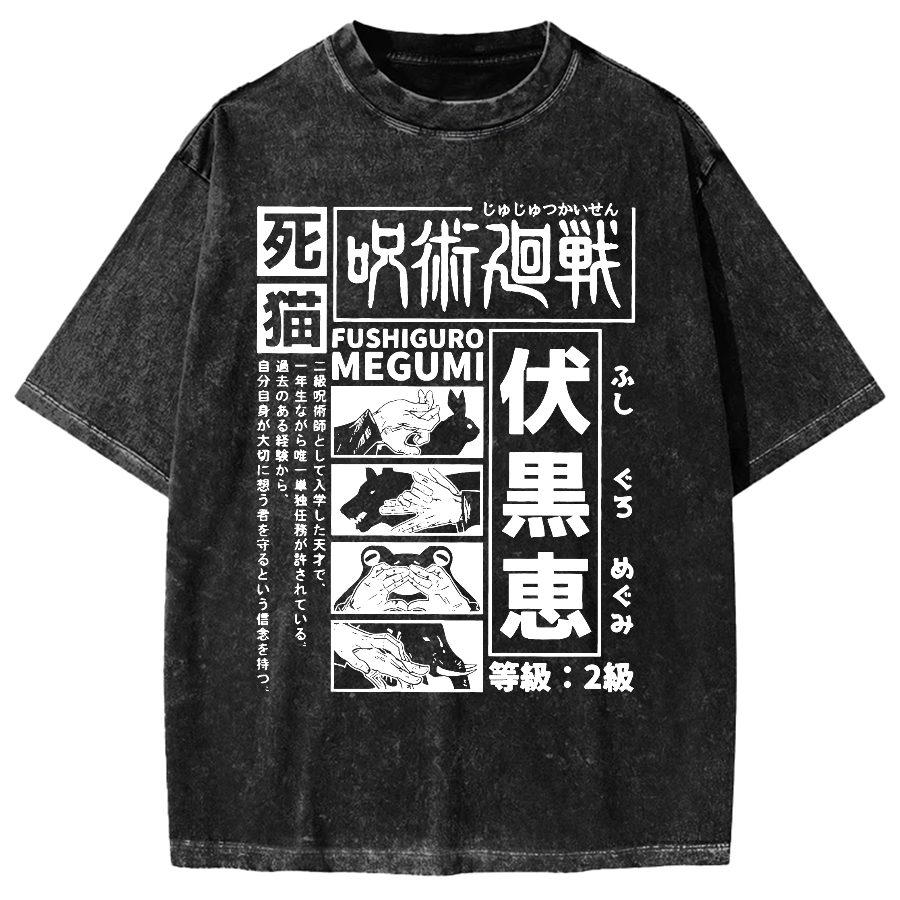 Fushiguro Megumi Japanese Anime Jujutsu Kaisen Vintage Washed T-shirt